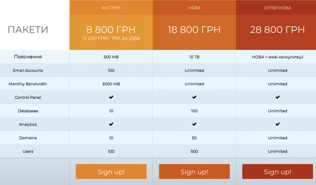 | Вартість за рік | 28 800 грн | 18 800 грн | 8 800 грн 13 200 грн — рік за два |